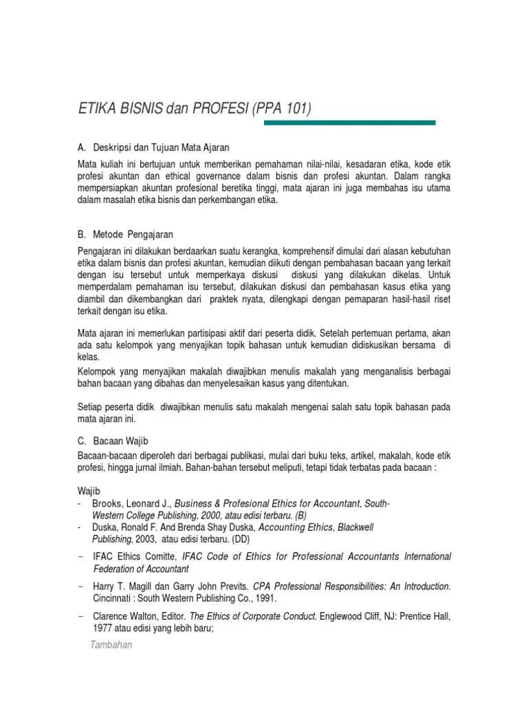 Contoh makalah etika bisnis dan kewirausahaan. Permasalah tersebut antara lain : Etika bisnis dan profesi akuntansi, jurusan akuntansi seorang cpa yang berpraktik publik harus mempelajari prinsip kode etik perilaku profesional dalam menentukan lingkup dan sifat jasa yang akan diberikan. Etika bisnis cenderung berfokus pada etika terapan daripada etika normatif. Binar kurnia prahani,m.pd oleh :